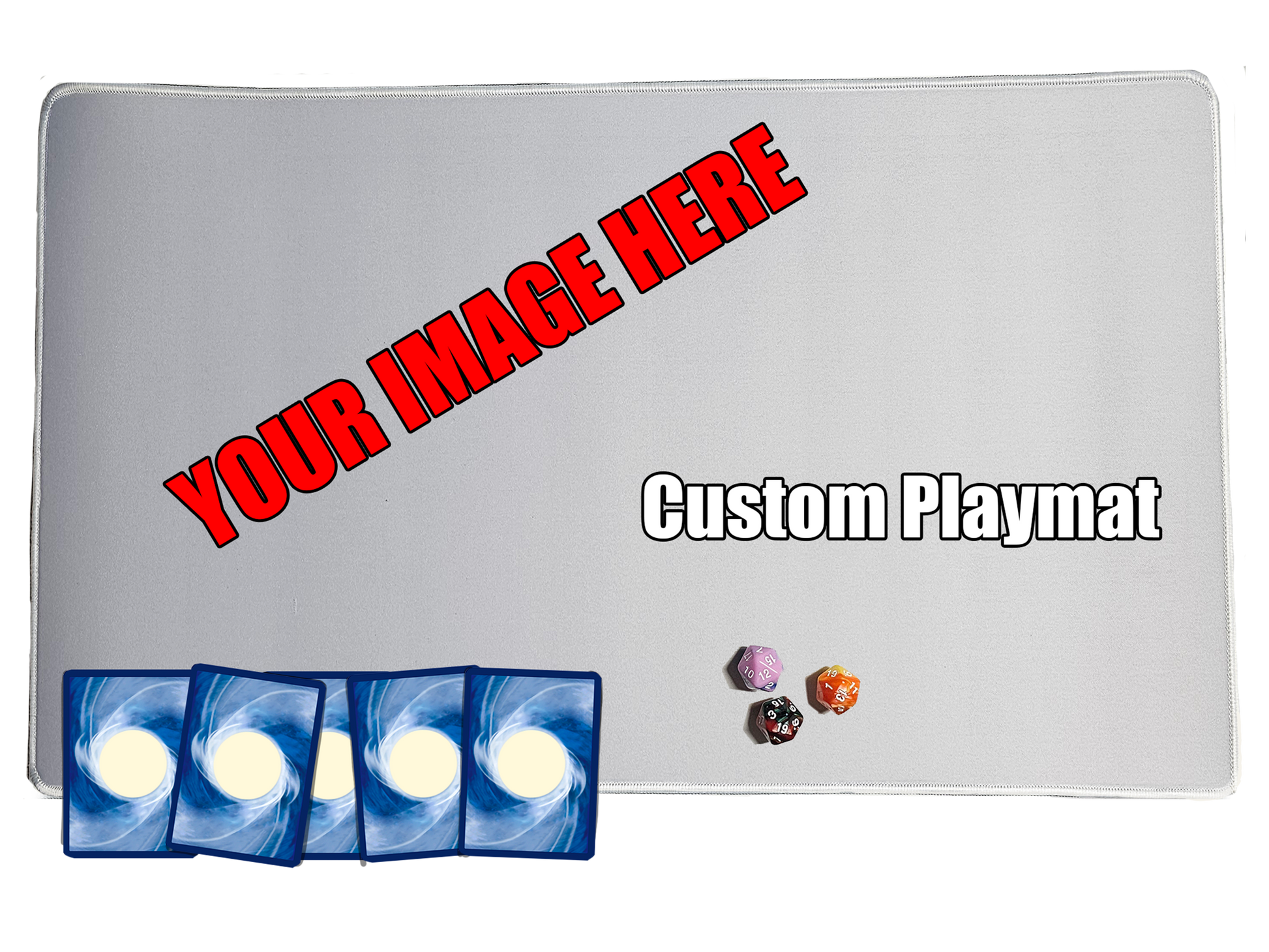 A Custom Playmat using an image of your choosing. Upload and position your image in the center of the mat using the button provided. Make sure any important parts of the image are within the mat and not touching the red border.